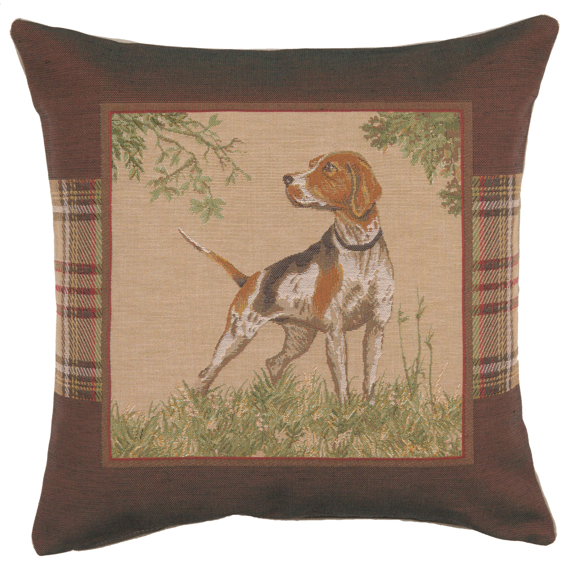 Dog Pointer is an artisan crafted European jacquard woven tapestry cushion cover displaying an English Pointer a favourite among hunting dogs.