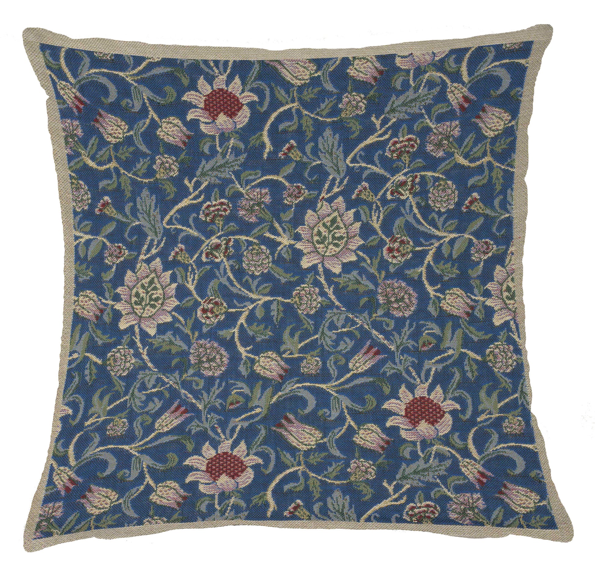 Fleurs de Morris Belgian tapestry cushion cover is inspired by the "Tree of Life" images by William Morris. Featured are the swirling flowers and leaves pattern classic to William Morris' work.