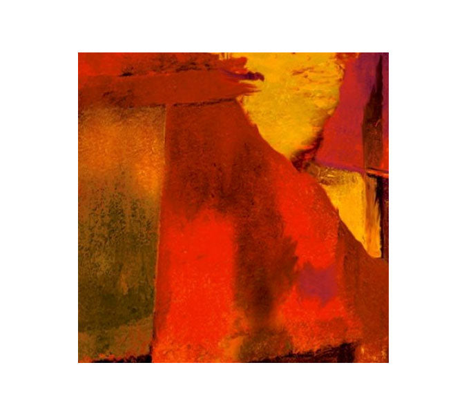 Behind the Curtain features an abstract view with shapes and colors in geometric patterns with long brush strokes.