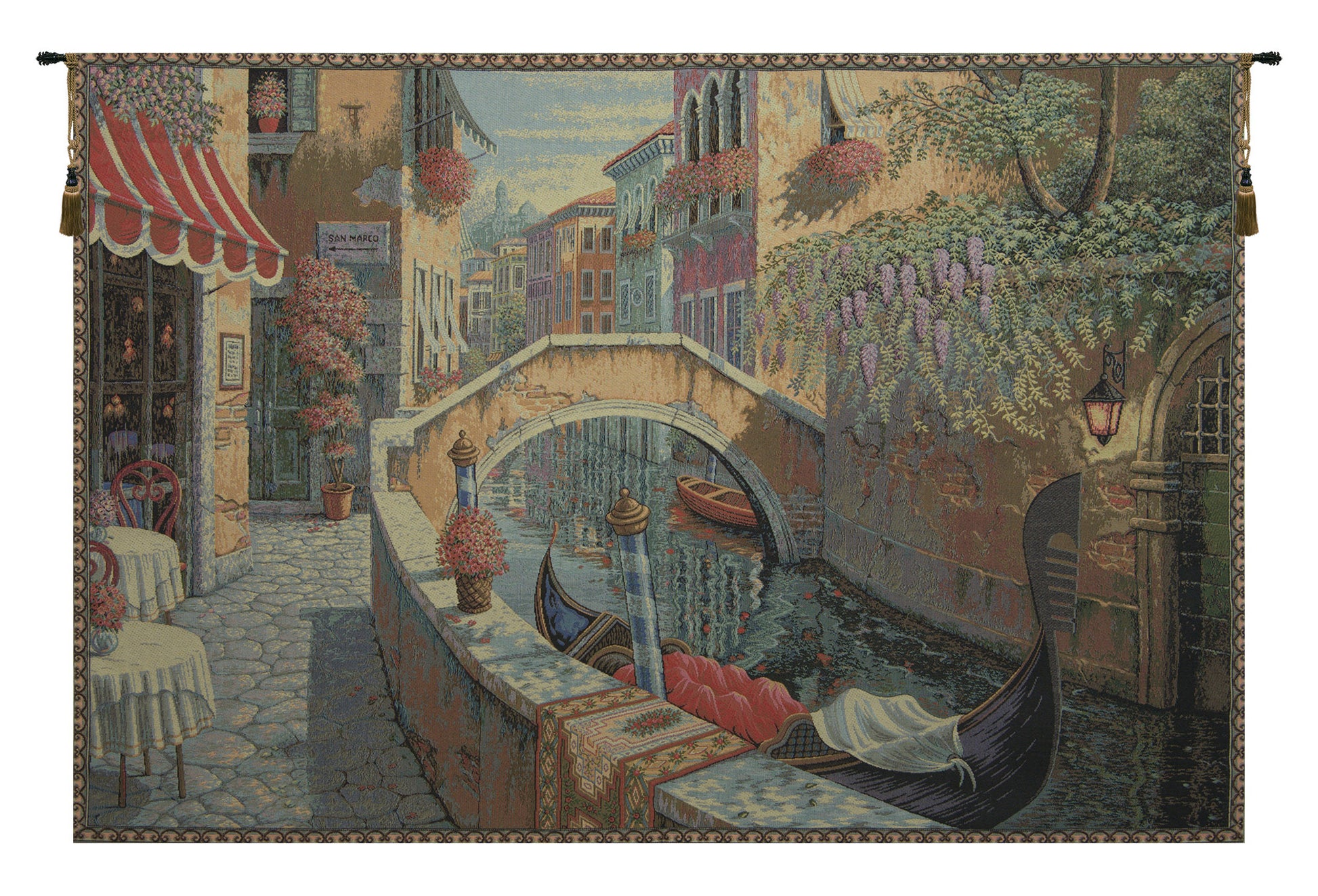 Romantic Venice has long been a source of inspiration for lovers and artists alike. We are no different; our Venezia Romantica Tapestry takes the pure sensory pleasure of dining along the Venetian canals to heart. The scene is one you will find throughout the most beloved Italian city. You can take a little piece of this sensation home with you to enjoy each day wherever, please. Hang this romantic tapestry in the breakfast room or the bedroom. It comes woven from Italy in cotton and viscose for a luxurious feel and sheen. Backed with lining and tunnel for easy hanging.