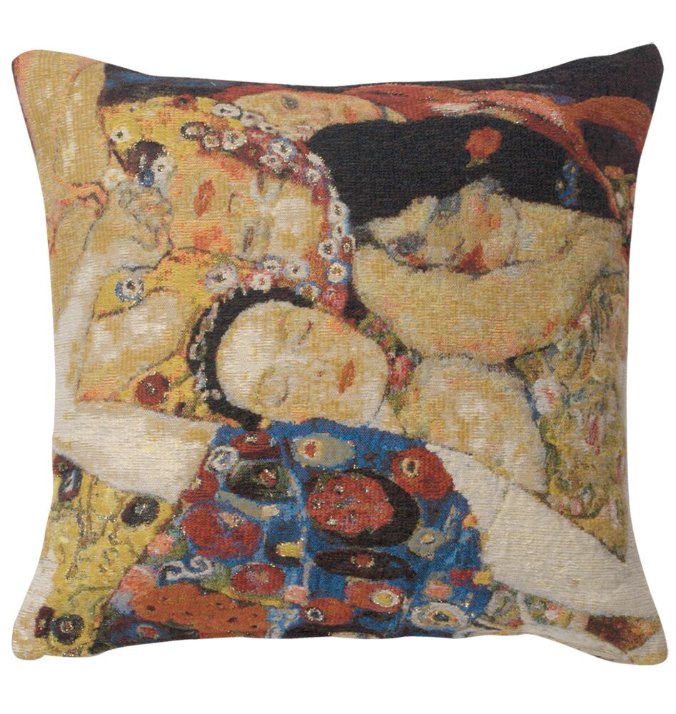 Virgin Faces is a Belgian impressionist tapestry cushion cover piece inspired by the famous works of Gustav Klimt. The detailed imagery of his art provokes a sense of wonder, and grants any room an air of sophistication.