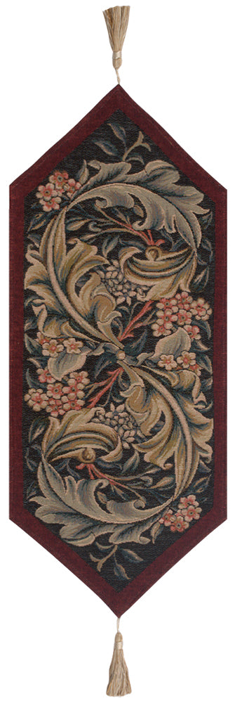 This jacquard table runner tapestry William Morris Red is woven on a red background. It is inspired from a William Morris embroidered panel done in 1898. This work portrays large acanthus leaves on a floral background.