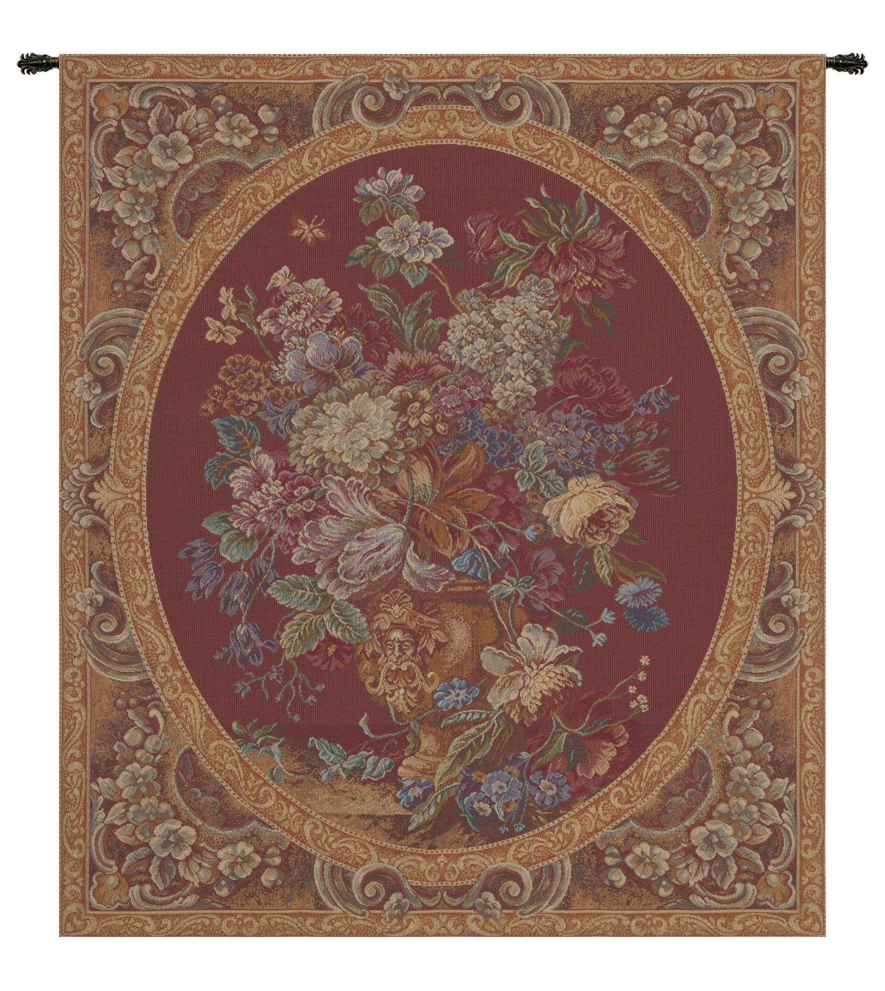 Floral Composition in Vase Burgundy Italian Wall Tapestry
