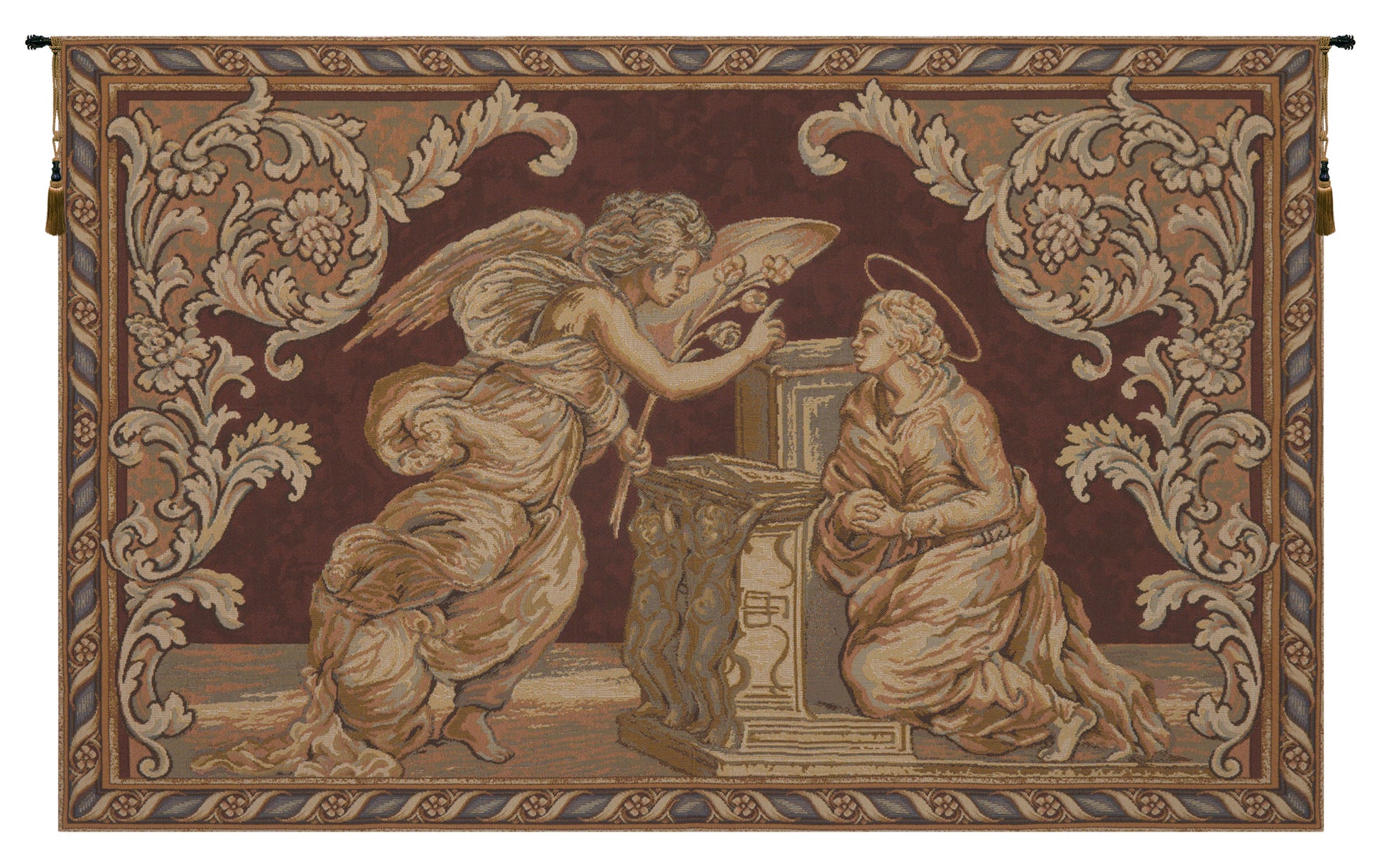Annunciation is an Italian jacquard wall tapestry. This work depicts the announcement of the Incarnation by the angel Gabriel to Mary. also referred to as the Annunciation to the Blessed Virgin Mary.