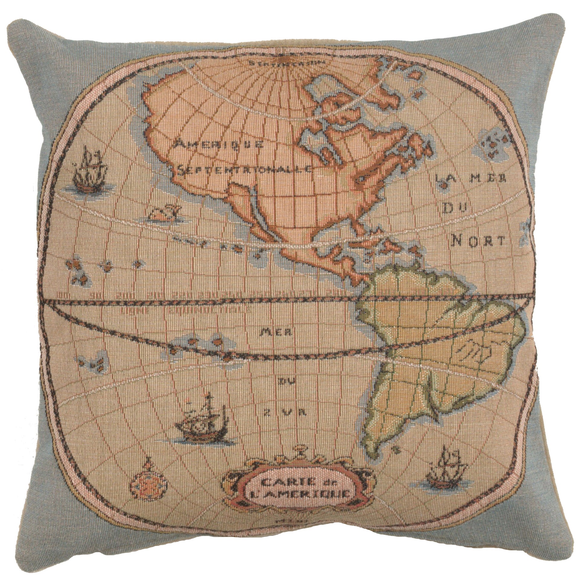 The elegance and sophistication of world maps translated into a French jacquard woven cushion cover.
