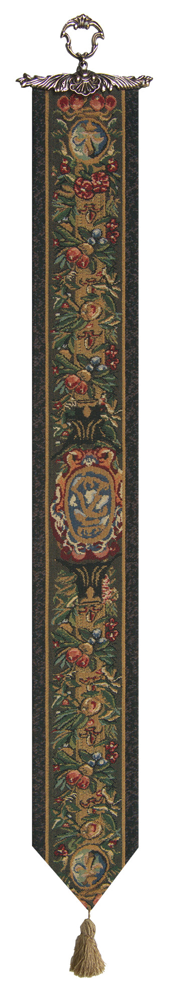 Prise de Lille Belgian tapestry bell pull is a picture condensed version of the La Prise de Lille tapestry wall hanging. This bell pull features the beautiful colors and flowers found in the wall hanging version.