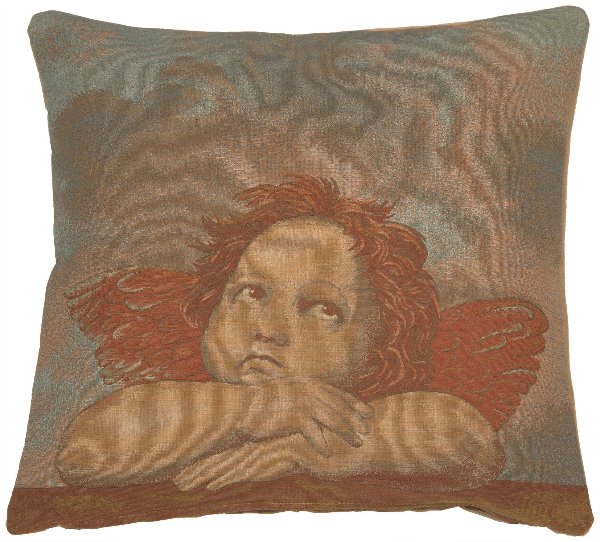 Raphael's Angel, Right Panel is a jacquard cushion cover y made in Italy. This custhion cover is an extract of The Sistine Madonna, one of Raphael's most famous works. Raphael (1483 - 1520) painted it as the altarpiece for San Sisto in Piacenza in 1513-1514. His work is admired for clarity of form, ease of composition, and visual achievement of the Neoplatonic ideal of human magesty. Together with Michelangelo and Leonardo da Vinci, they form the traditional trinity of great masters of that period.