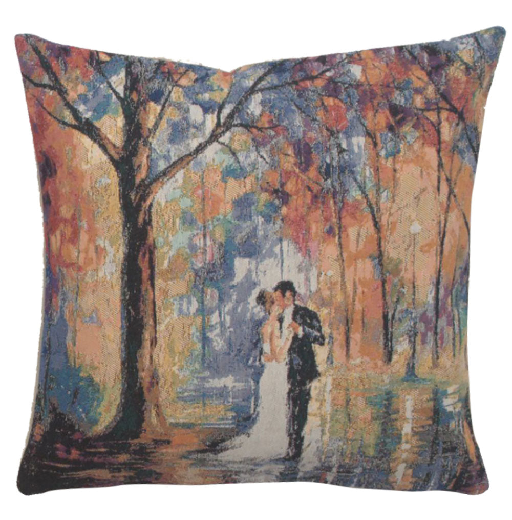 Wedded Bliss is a woven designer tapestry cushion cover depicting a bride & groom dancing within a forest. This accent pillow makes a wonderful wedding gift to newlyweds and adds an air of romanticism to your home motif.