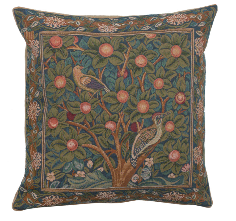 Woodpecker is a jacquard woven tapestry cushion cover that was originally designed in 1885 by William Morris and based on his poem about Picus, the Italian King who was transformed into a woodpecker in Ovid’s Metamorphoses, Book XIV. This classical work was the one of the most read books in the Middle Ages.